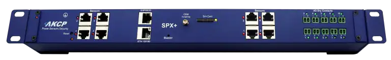sensorProbeX+ (SPX+) – Monitor ambiental IP modular para sensores inteligentes AKCP y E/S industriales (SNMP, Email, Buzzer)