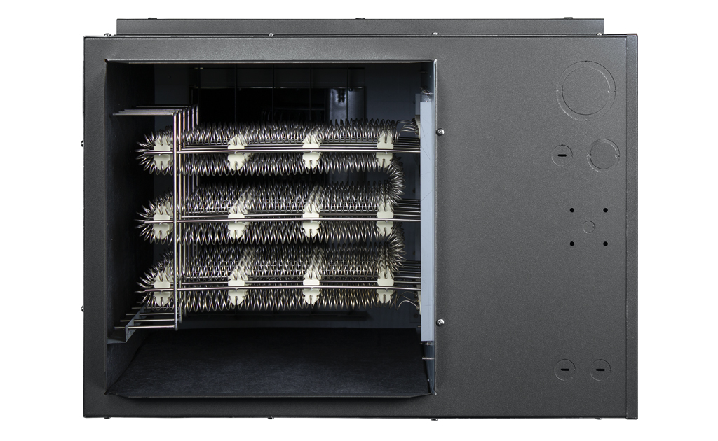 Calefacción eléctrica modulante: Elementos calefactores disponibles de 3.8 kW a 34.5 kW controlados por relés de estado sólido (SSR) para una regulación precisa de la temperatura de descarga.